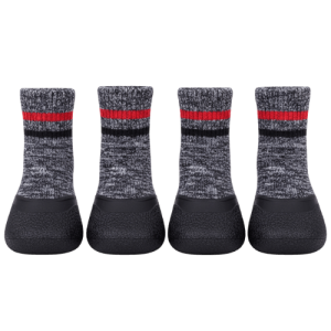 Whether for added stability on tiled or wooden floors or protection during outdoor walks, these anti-slip dog socks provide a reliable solution for everyday paw care. Their simple black and grey design ensures a stylish yet practical finish.